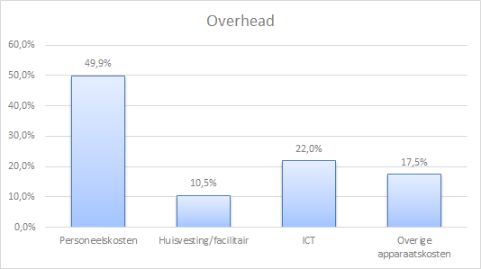 In dit hoofdstuk wordt inzicht gegeven in de overheadkosten van de gemeente Stein. De overheadkosten voor de gemeente Stein kunnen in diverse onderdelen worden opgedeeld, zoals zichtbaar in onderstaande grafiek.